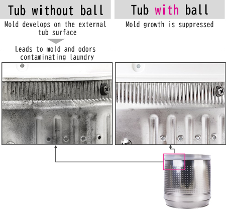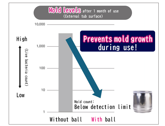 With ball: Used the above plus the NANOX Washing Tub Antimold Ball for Top Loading Washing Machines. (This product is not a mold remover.)