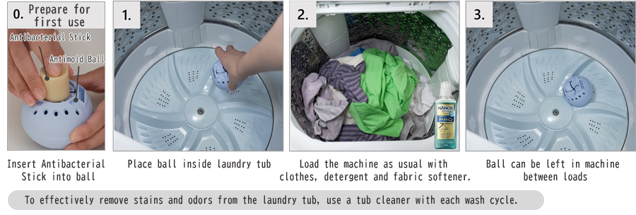 - Launch of the NANOX Washing Tub Antimold Ball for Top Load Washing Machines—Simply place this device in the tubs of your washing machine to prevent odor-causing mold from forming and eliminate damp, musty odors from clothing.