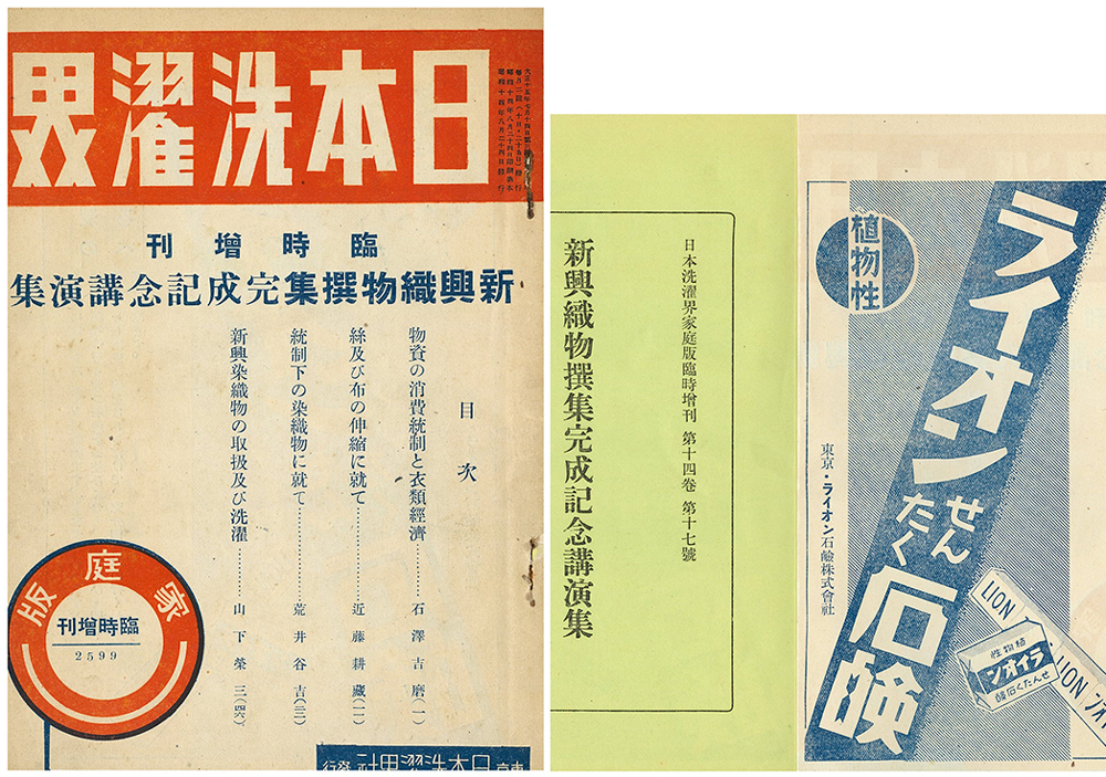 完成時には記念講演会を開催し、「日本洗濯界」誌の臨時増刊も発刊されました。予約規定書に「衣類整理・裁縫教室渇望の教材!」と書かれていることから、待ち望まれた教材であった、と思われます。