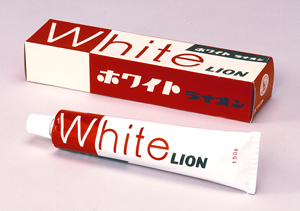 カラフルなパッケージが主流の時代に、あえて「白」を使い、清潔・健康のイメージを表現したのが「ホワイトライオン(1961(昭和36)年発売)」でした。「白い歯を作る白いハミガキ」のコンセプトに徹底的にこだわり、ペーストの色を“白”にして販売。歯の美白を前面に訴求した「ホワイトライオン」の誕生です。ハミガキは“白”の時代を呼んだ製品ともいえる逸品です。