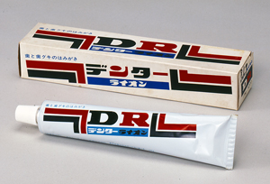 1964(昭和39)年、日本で初めて「歯槽膿漏の予防」に重点を置いた新しいコンセプトのハミガキ「デンターライオン」が発売されました。白地に赤と黒の文字が印象的なパッケージです。
