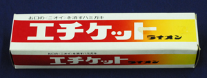 歯をみがく理由として、江戸時代から謳われていたのが、口臭を防ぐこと。1950年代の緑のハミガキは、葉緑素配合で口臭を防ぐことを訴求していました。口臭の原因を根本から取り除く「お口のニオイを消す」本格的な口臭除去歯磨として誕生したのが「エチケットライオン(1968(昭和43)年発売)」でした。印象的なデザインのパッケージは、当時のハミガキでは初めてのグラデーション印刷を採用し、清潔感と高級ムードを活かして差別化を図ったと言います。