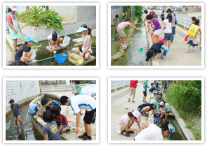 - 4月~8月:「せせらぎ(ビオテリア)」の清掃活動やそこに住む生き物を飼育・観察。