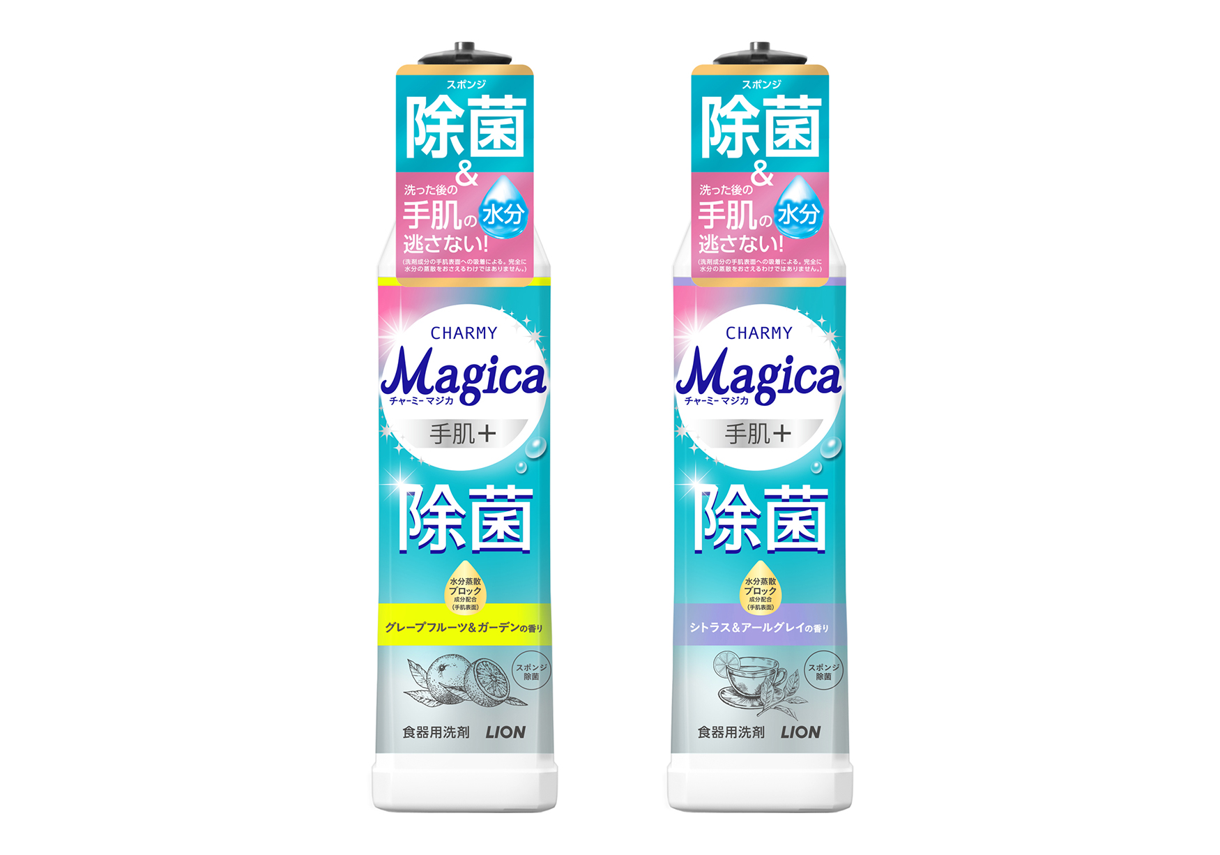 ライオン株式会社(代表取締役兼社長執行役員:竹森 征之)は、除菌効果※1や高い洗浄力で手早く洗い上げる力はそのままに、手肌の水分を逃さず※2手肌にやさしい食器用洗剤『CHARMY Magica 手肌+(プラス)除菌』と、油分解酵素新配合で油汚れをラクに落とせる食器用洗剤『CHARMY Magica 酵素+(プラス)』を、2026年4月15日(水)から全国にて新発売いたします。