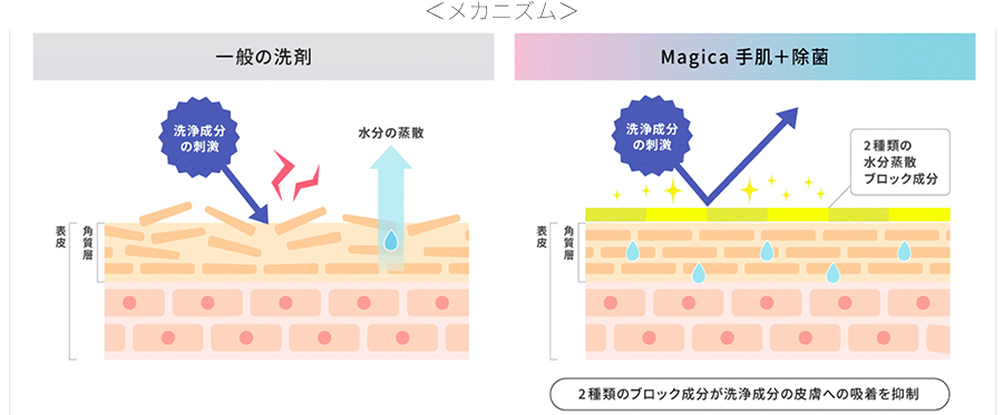 ※2 洗剤成分の手肌表面への吸着による。完全に水分の蒸散をおさえるわけではありません。
