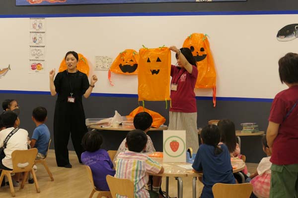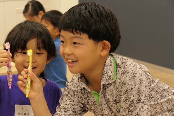 今回もパパママたちにはセミナーに集中してもらうために、子どもたちは別室で楽しい工作タイム。オリジナル歯ブラシ作りとともに、子どもたちの楽しみなイベント、ハロウィンに向けた工作を楽しんでもらいました。