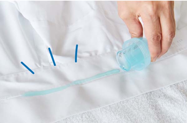 大貫さんによると、ポイントは収納後の黄ばみとニオイの原因となる「皮脂汚れ」をしっかり落とすこと。具体的には黄ばみが出やすい脇の下、エリ・袖など、液体洗剤を直接塗ってから洗濯機へ入れることがオススメだそうです。