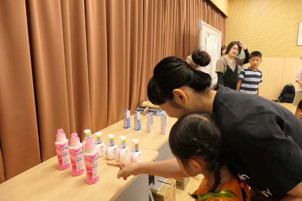 それから約半年が経ち、今回の開催は9月上旬。とはいえ、残暑と呼ぶのもはばかられるほど激しい太陽が照り付け、参加した皆さんも我々も汗をかきながら会場へ向かうような状況でした。それでも、Tシャツをはじめ、夏に活躍してくれたアイテムたちもあと少しでお役御免となる秋の衣替えシーズンは目前です。そこで今回は、日常的なお洗濯やライオンが提案する環境にやさしいお洗濯の方法だけでなく、秋の衣替えで春夏物をタンスの中にしまい込む前の「しまい洗い」のコツについてもお伝えしました。