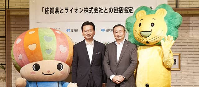 8月4日(土)ライオン株式会社は、佐賀県との包括協定を締結しました。今後、「夫婦間の家事に関する意識の違いを解消することを目指した、夫婦のコミュニケ-ションの活性化・家事スキルの浸透に関する活動、健康づくり・歯科保健対策に関すること、衛生習慣の向上・浸透に関する活動」の3分野で佐賀県での取り組みをサポートして行きます。協定式には、佐賀県の山口知事と、ライオンの小林取締役が出席し、がっちりと握手を交わしました。