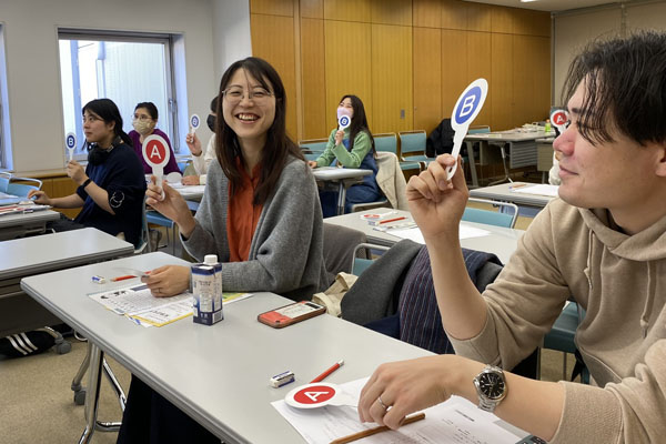 続いて行われた杉本マイスターによるオリエンテーションでは、ライオンが調査した夫婦間の家事や家事分担に関するデータをもとに、「夫婦でも実は家事への向き合い方は違っている」ということを伝えるために、それぞれの家事に対する向き合い方を知ることができる質問が投げかけられます。