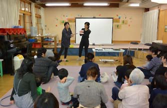 「保護者会講演会」で行われた親子講習の様子(坂出市立西部保育所)