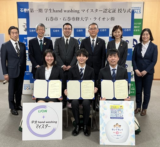 2025年3月26日、宮城県石巻市役所で「第一期 学生hand washingマイスター認定式」を開催しました。