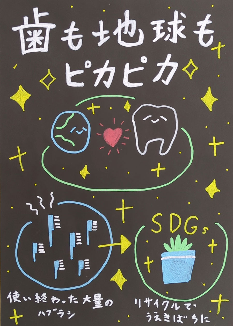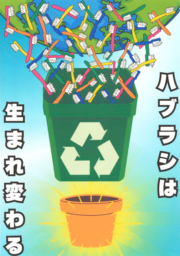 ハブラシをリサイクルしてしげんを未来につなげていきたい気持ちをこめました。