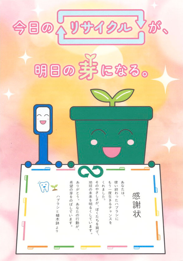 今後も歯とお口の健康習慣とプラスチックを無駄にしない習慣づくりを推進すべく、ハブラシリサイクル活動の周知拡大に努めてまいります。
